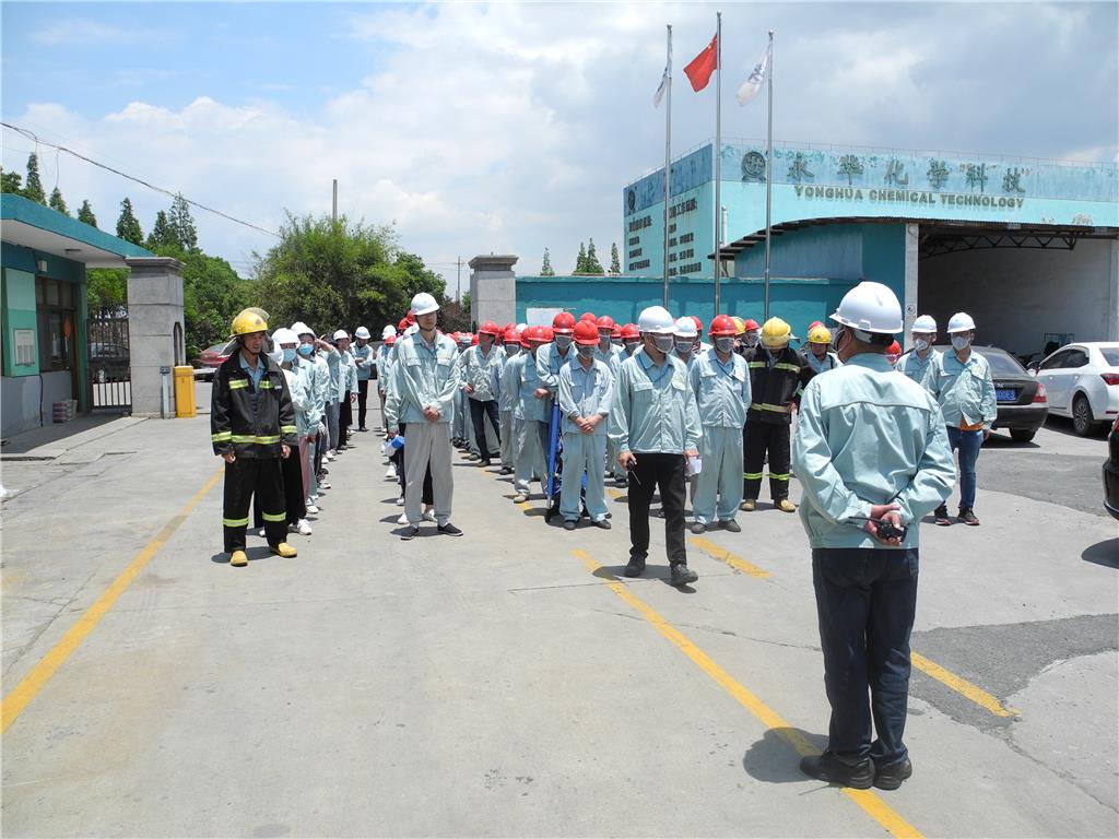 6月22日中午,永华化学召集全体职工开展综合应急预案演练。本次演练旨在检验公司应急预案的可操作性,发现不足予以修订和完善;检验永华化学应急预案启动、各部门应急队伍响应与处置、现场协调指挥的适用性等。