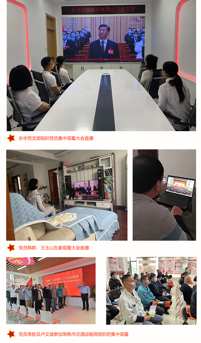 10月16日,中国共产党第二十次全国代表大会在北京人民大会堂隆重召开。永华化学股份党支部组织和动员党员干部以集中观看电视直播、个人观看网络直播等多种形式,收看党的二十大开幕会直播。