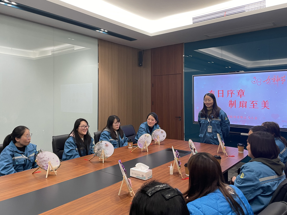 活动现场,女员工代表们齐聚一堂,亲手制作专属团扇。大家充分发挥创意和想象力,将春日的美好祝愿融入扇面,一幅幅精美的团扇作品在指尖绽放。