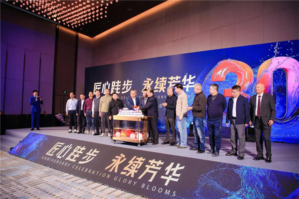 当象征着三十周年辉煌与未来期许的庆典蛋糕缓缓推至台前,主桌嘉宾纷纷移步蛋糕旁,全场目光聚焦于此。顾学峰总经理和黄志斌教授共同执起金刀,“从头切到尾,顺风又顺水”,寓意着永华化学未来步步登高、甜蜜圆满。