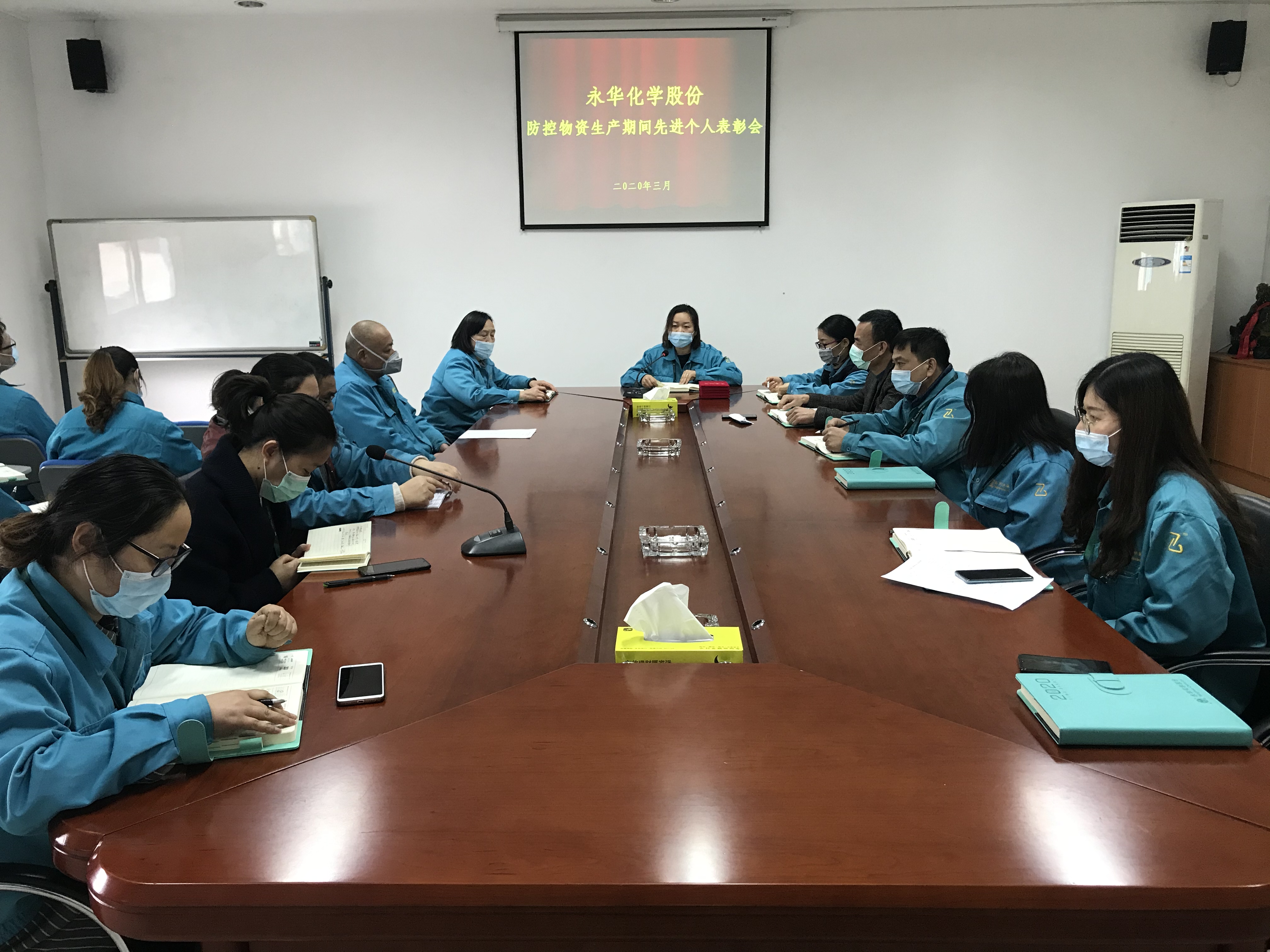 2020年3月13日,我公司召开防控物资生产期间表现突出的“先进个人”表彰大会。供应链副总张丽萍、销售副总周军、工厂各部门副职及以上干部出席会议,会议由工会主席刘敏花主持。
